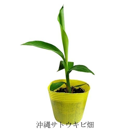島バナナに比べ幹が太く、低位で結実し味も良いので、沖縄では島バナナ同様、人気のある品種です。葉面はロウ質が多く、赤茶色の斑が入ります。約2mで結実するため、観葉植物としてもお勧めです。
