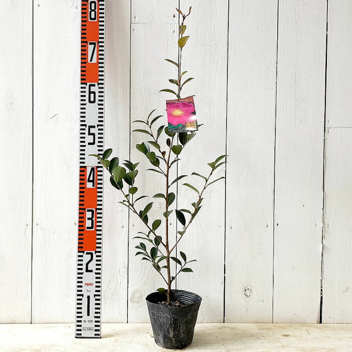 日本のサザンカより小ぶりで直径3cmくらいですが、12~1月頃に白い花を咲かせ、お正月頃に開花が楽しめる数少ない花木です。葉は革質で光沢がある濃い緑色です。コンパクトなので鉢植えにもおすすめです。比較的耐寒性もあり、関東以南では庭植えも可能。
