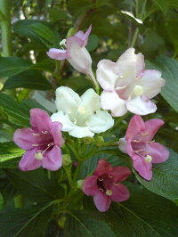 丈夫で育てやすいです。花期は5~6月頃花色が白から淡紅そして紅色に変わり3色の花を同時にさかせます。